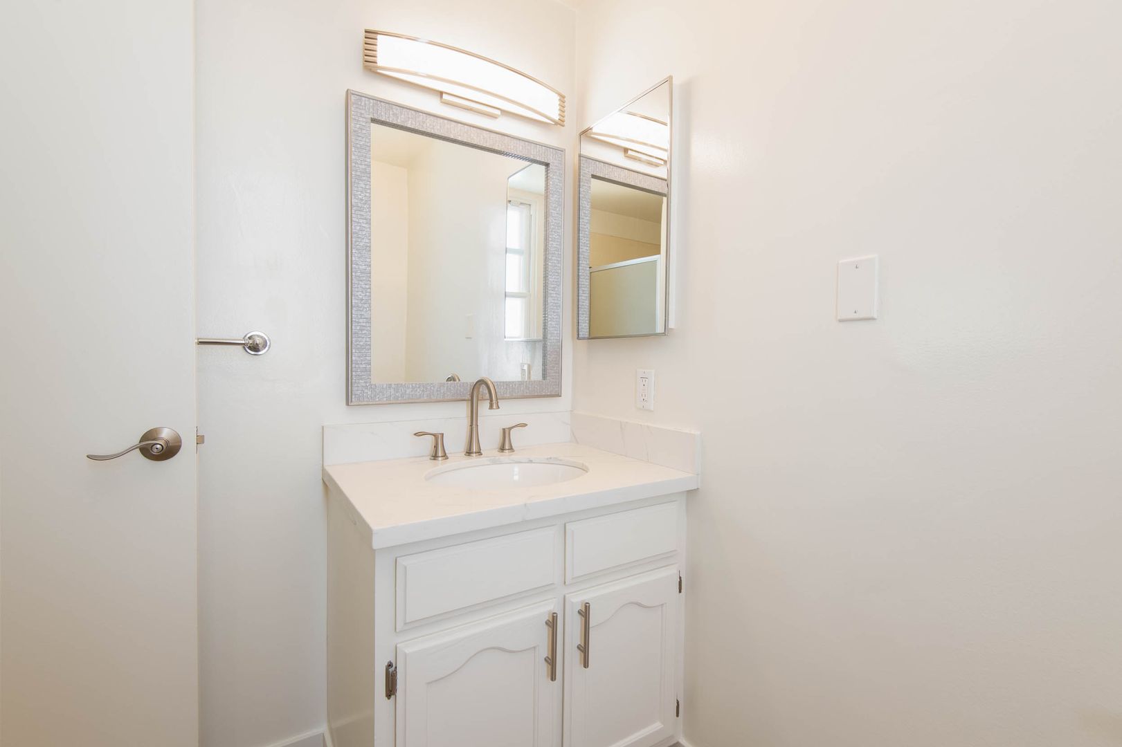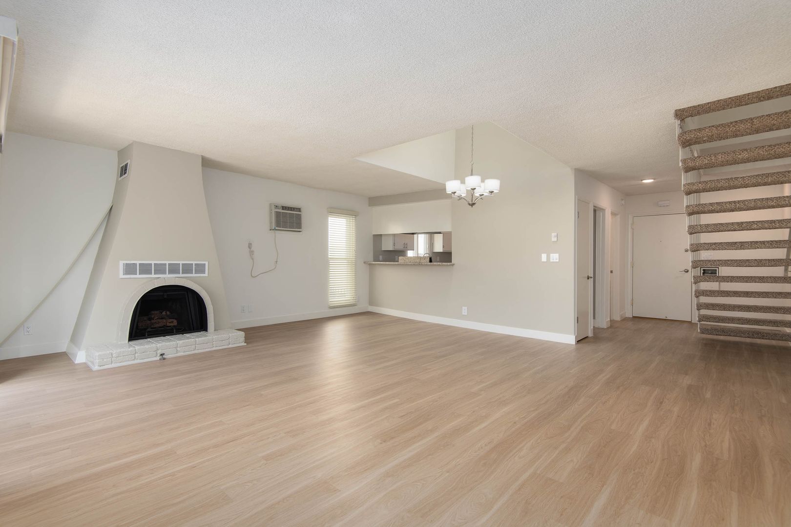 This beautifully remodeled 2 bedroom 2.5 bath townhome boasts 1,100 sq. ft. with dramatic 17' ceilings in the living and dining room! As you enter, you are greeted by a bright and open floor plan. The open dining space flows seamlessly into the spacious living room that includes a beautiful gas fireplace and AC/Heat Pump to heat and cool the entire downstairs space. The beautiful kitchen features a premium stainless steel appliances, recessed lighting and granite countertops! The stackable washer and dryer is conveniently located by the kitchen. The private patio off the living room can accommodate small patio set and plants. The remodeled downstairs half bathroom is great for guests and features granite countertop and modern fixtures. As you ascend the stairs, there are 2 spacious bedrooms on the 2nd level. Both bedrooms are spacious and have mirrored closet doors. The master bedroom has a full attached renovated bathroom with glass shower doors, quartz countertop and modern fixtures. The second bedroom is generously sized and can be used as a home office or guest room. Full hallway bathroom with quartz countertops, full bath/shower combo with custom tile, glass shower doors and designer mirror! This townhome is a must see!