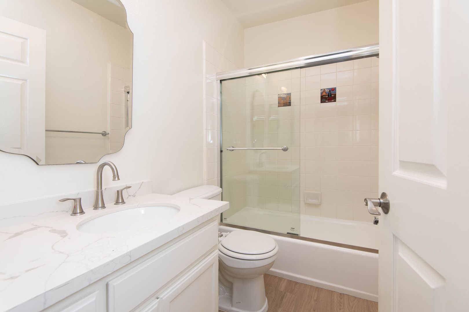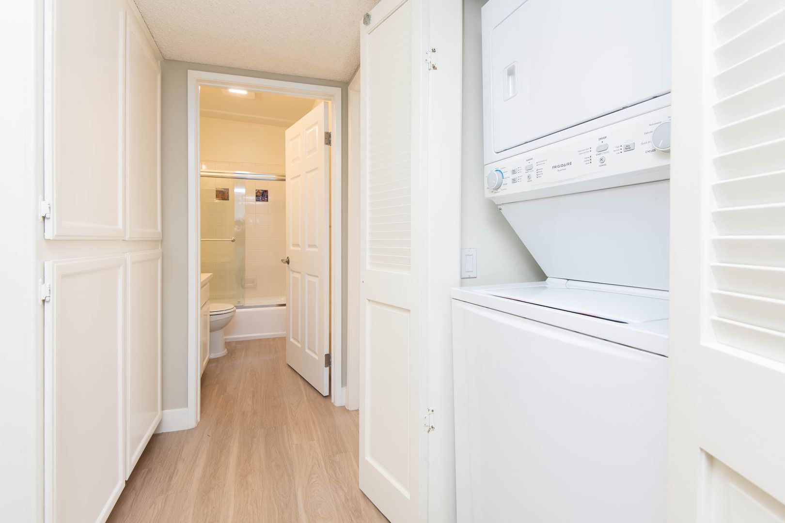 Stunning 1120 sq. ft. 2 bedroom 2 bath floorplan has been upgraded and has everything you are looking for! This bright and spacious open floorplan has it all. The open living and dining room floorplan has a gas fireplace and off the sliding glass doors is a private balcony that makes this place feel like home. The dining area also has a large picture window for lots of natural light. Next to the dining area is the custom designed kitchen that offers gorgeous quartz countertops, stainless-steel appliances. As you enter the hallway, there is a full size stackable washer/dryer that is a huge amenity in any home. The master bedroom is very large that can fit a king size bed with wall-to-wall mirrored closets and a full private attached bathroom with quartz vanity, glass shower doors, and a designer mirror. The other bedroom is located across the hall and is nice sized with double mirrored closet doors. The full hallway bathroom has a quartz countertop vanity, full bathtub/shower combo, and glass shower doors. One of a kind apartment with all the amenities and extra features you seek!