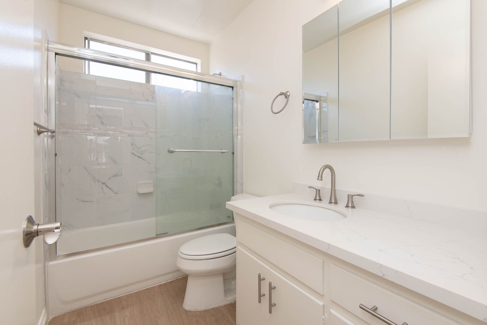 Beautiful and fully renovated 720 sq. ft. 1st floor 1 bedroom 1 bath + formal den. This unique and gorgeous apartment home has it all including a combo washer/dryer which is a special amenity in any home! As you enter, you will notice the open living and dining area with laminate flooring and a large picture window for lots of natural light. The spacious living room leads onto a formal den with French doors that can be a home office/guest room and has a wall A/C to keep the entire space cool. Next to the den is the stunning kitchen with premium stainless steel appliances that compliment the ceramic tile countertops with freshly painted cabinets and a nice window for more natural light. There is also extra storage and linen space in the hallway. The renovated hallway bathroom has custom tile bathtub backsplash, glass shower doors, and a quartz vanity counter. The spacious bedroom has a very large walk-in closet and can fit a queen size bedroom set comfortably! A one-of-a-kind apartment home in highly desirable Culver City. Don't wait because it will rent fast!