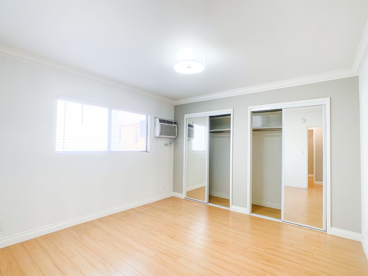 This spacious 730 sq. ft. 1 bedroom 1 bath has been completely renovated with an open floorplan. You will love the laminate flooring, crown molding and custom accent walls. The wall of windows in the living room allows for lots of natural light. The designer kitchen is equipped with stainless steel appliances, accented by striking quartz countertops and ample cabinetry. The modern oven hood makes a statement and the compact washer and dryer is a great addition to this apartment. The extra window brings in more natural light. As you enter the hallway, there is a separate dressing area adjacent to the bathroom with additional mirrored closets. The remodeled bathroom has quartz countertops, glass shower doors and a designer mirror with modern fixtures. The large bedroom can fit a full bedroom set with wall to wall mirrored closet doors for your wardrobe needs. There is a wall AC to keep you cool on those hot days. Don't miss out on this special apartment home!