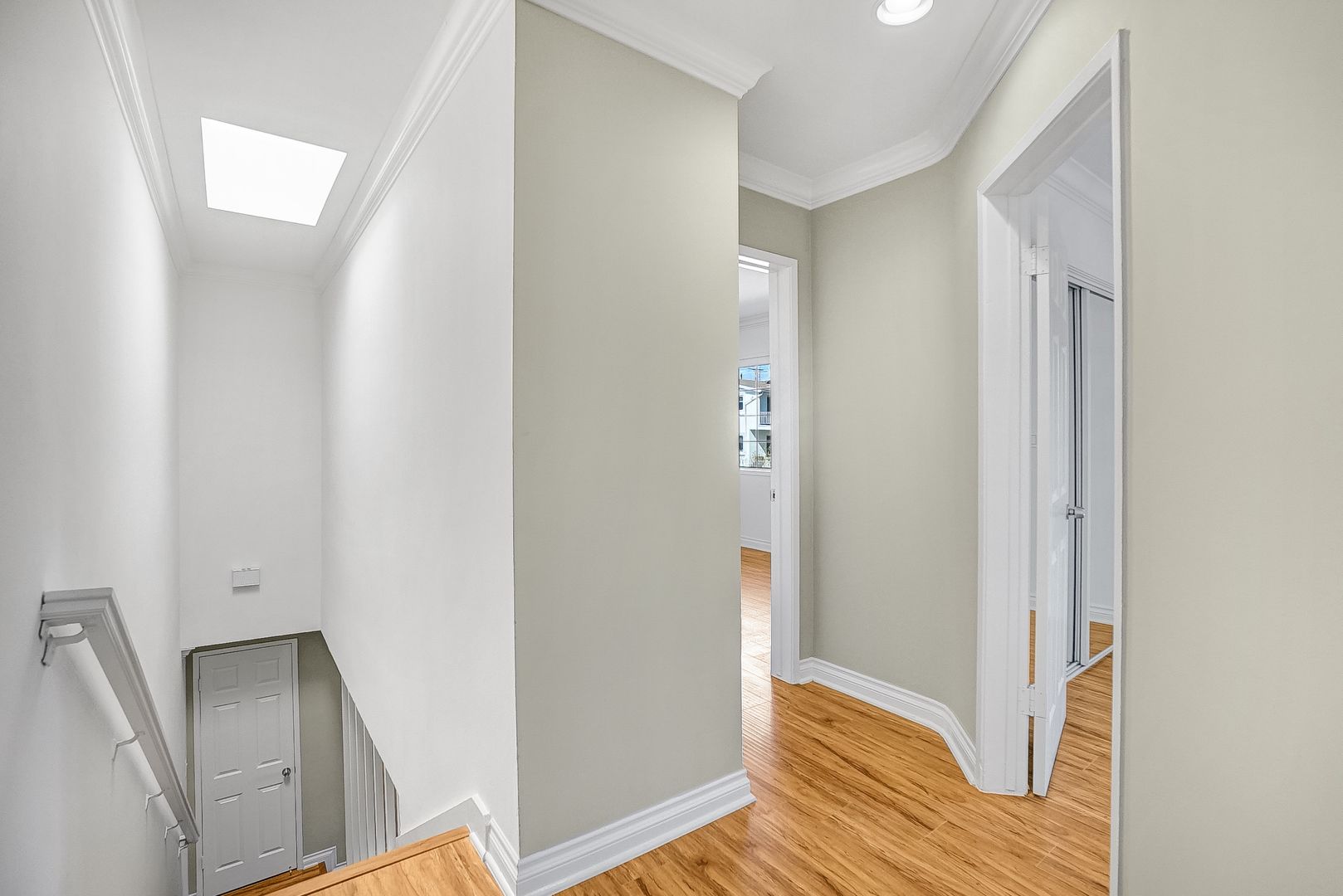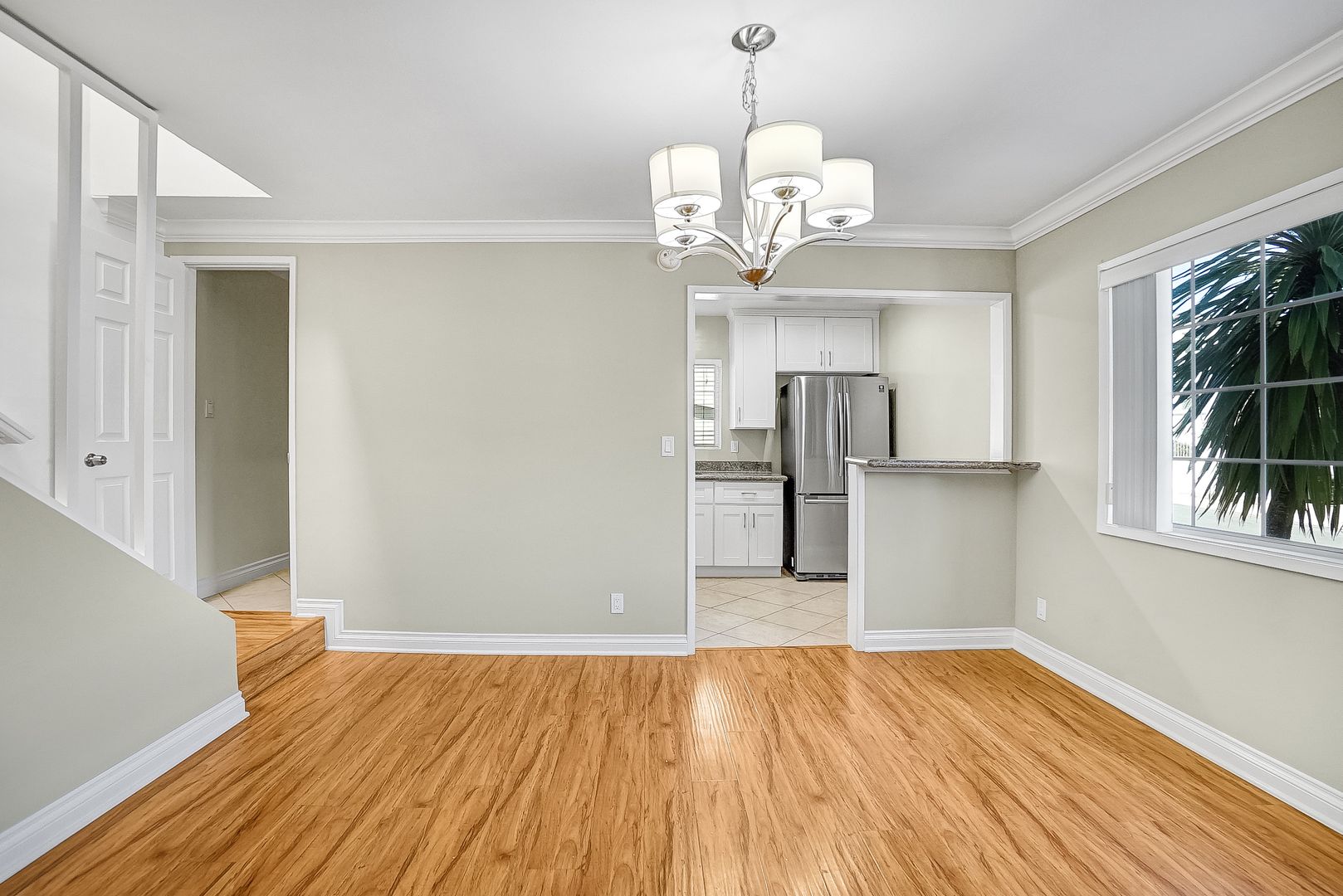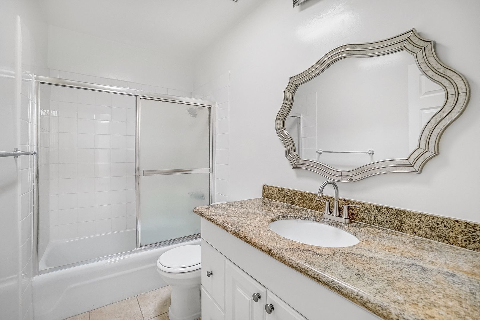 This stunning renovated 1230 sq. ft. 2 bedroom 2.5 bath townhome also has additional 600 sq. ft. private front yard! This beautiful home has all the amenities you desire. As you enter the spacious living room, it welcomes you with a cozy gas fireplace, crown molding and French doors that lead onto one of the private balconies that overlooks your own private front yard. This large outdoor space is perfect for patio furniture and plants. The living area leads to the formal dining area with a custom chandelier and a convenient guest bathroom off the dining space. Next to the dining room is the open and modern kitchen with granite countertops, stainless steel appliances, recess lighting and an extra granite serving bar. The spacious dining area also has an extra closet for needed storage. As you go up to the 2nd floor, you will immediately notice the skylight on the staircase that brings lots of natural light. The upstairs hallway has the full size stackable washer/dryer that is a huge benefit in any home. The bedrooms are conveniently located across the hall from each other for the ultimate privacy. The primary bedroom is very spacious and has a walk in closet with built in shelving. The full attached bath has granite countertop, full tub/shower combo and a designer custom mirror. The other full hallway bath also has granite countertops, glass shower doors, designer mirror and modern fixtures. The 2nd bedroom is very spacious and can easily fits a queen bedroom set. It has double mirrored closet doors and lots of natural light from the French doors that lead onto its' own private balcony that overlooks the private yard. This huge and unique floorplan is ideal for roommates or a family!