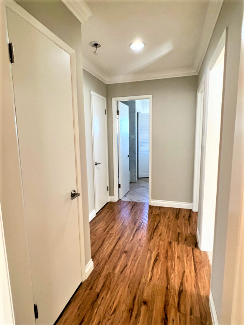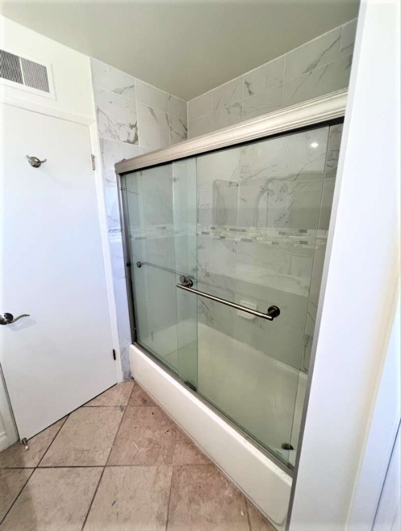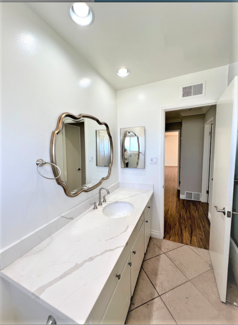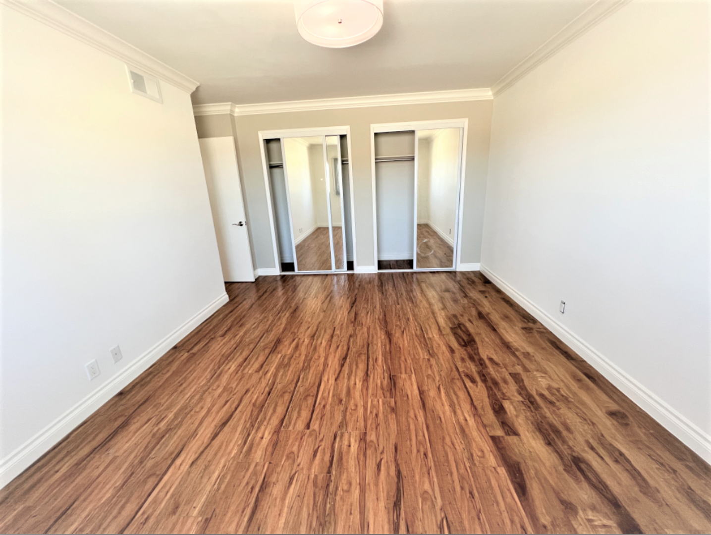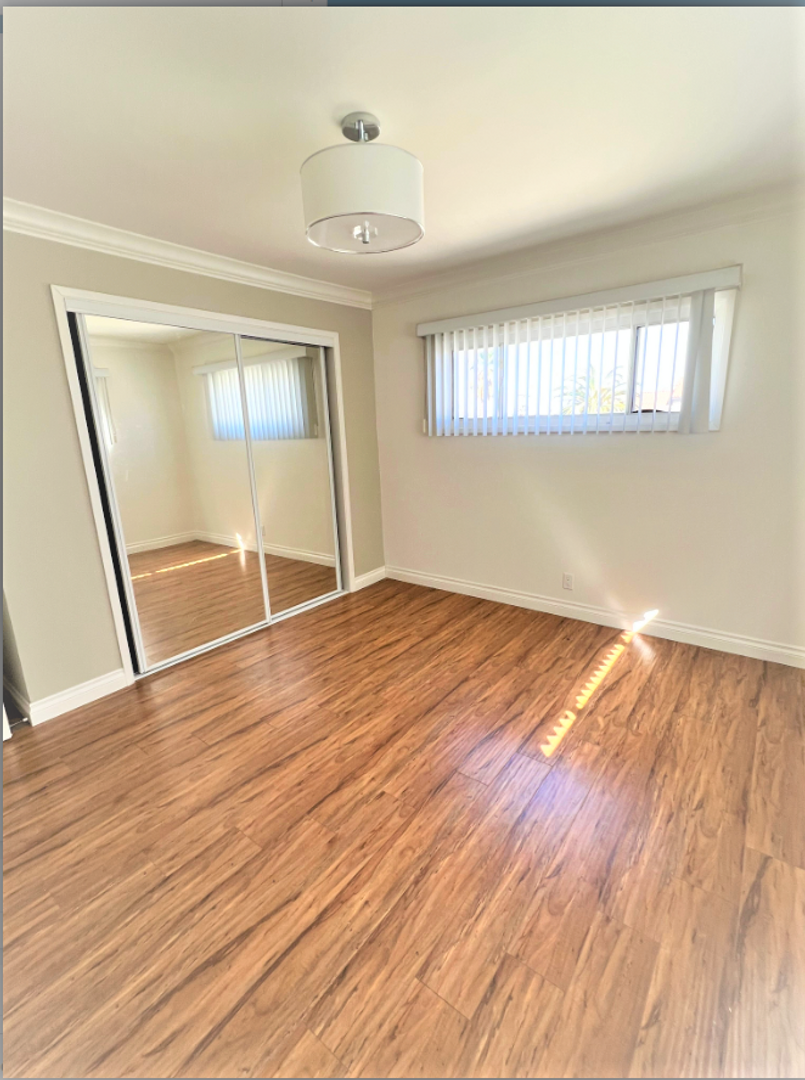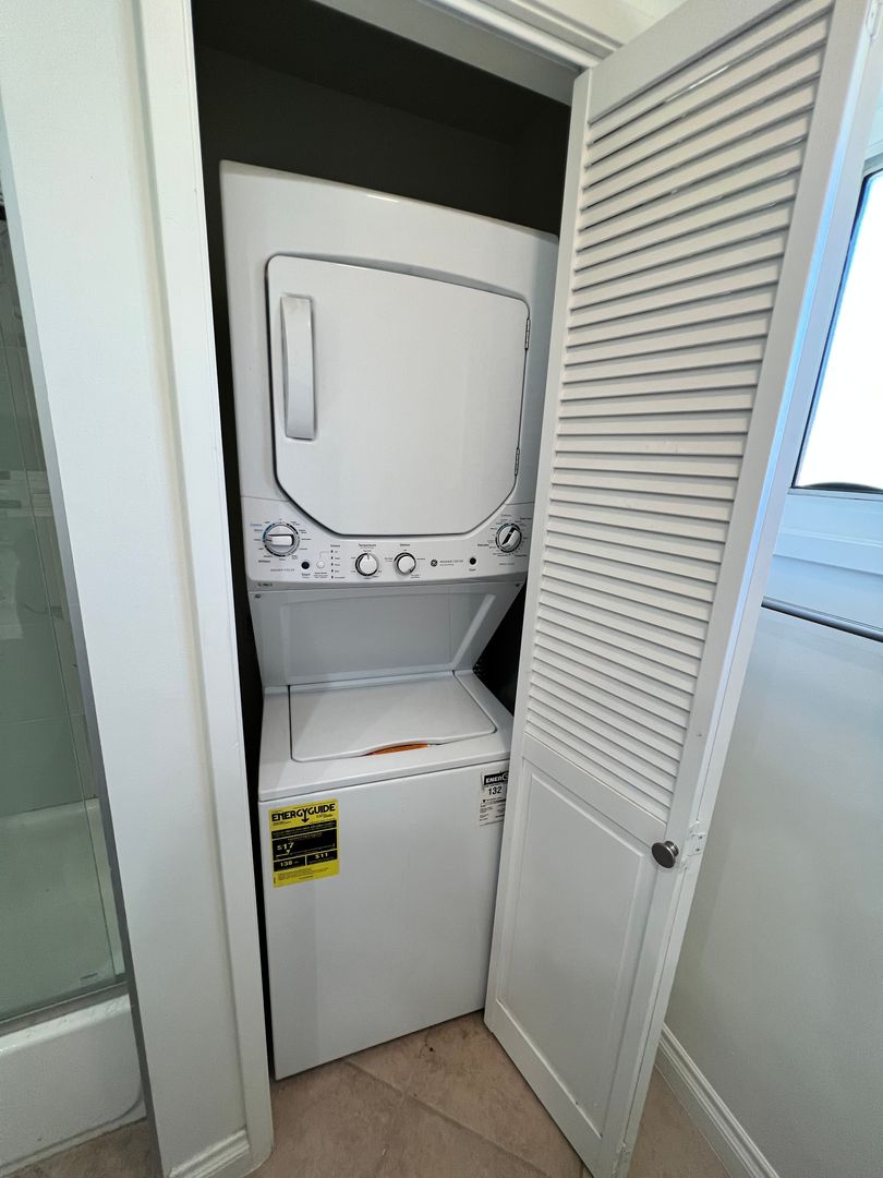 Sunny and spacious top floor 2 bedroom 1 bath apartment home that boasts 1010 sq. ft. and features laminate flooring, premium stainless steel appliances and stackable washer and dryer. As you walk in, you will notice the large open floor plan with a spacious living room and dining area that leads onto a 65 ft patio! This huge outdoor space can accommodate patio furniture and perfect for dining and entertaining year long. The living room also has a wall A/C to keep the entire area cool. The bright and spacious kitchen has granite countertops, stainless steel appliances, recessed lighting and a nice kitchen nook. As you walk through, there is a full hallway bathroom that has been recently remodeled with modern quartz countertop, custom bathroom tile, glass shower doors and a designer mirror. The first bedroom is very spacious with tons of natural light and a double mirrored closet door. The second bedroom is a nice size and also has mirrored closet doors. There is also additional storage space in the living room and hallway closets. This apartment home is perfect for work from home, roommates or a family!