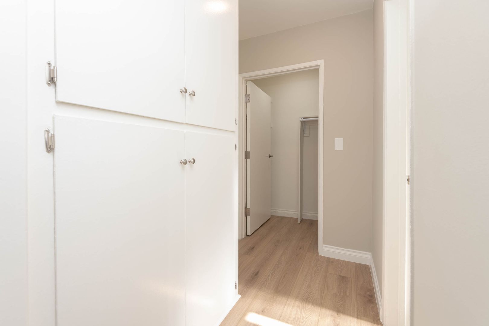 This newly renovated, 700 sq. ft. 1-bedroom, 1-bathroom apartment features NEW laminate flooring and upgrades throughout. The bright and open-concept living and dining area provides direct access to a 65 sq. ft. private balcony with a beautifully landscaped view. For year-round comfort, there is a wall-mounted A/C and heat pump. The modern kitchen shines with NEW quartz countertops, stainless steel appliances, and ample cabinetry. There is also a serving bar that is great for bar stool seating. The hallway includes a large closet with shelving, perfect for storage. The NEWLY updated bathroom boasts new custom quartz tile for the bath/shower combo, new glass doors, a quartz vanity, and upgraded lighting. The spacious bedroom offers double mirrored closets and a large window for plenty of natural light. This is a great apartment home! Schedule a viewing today.