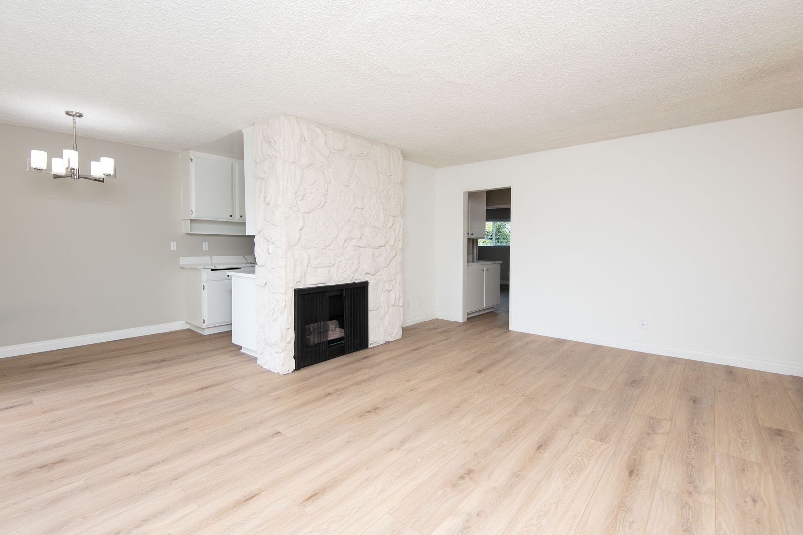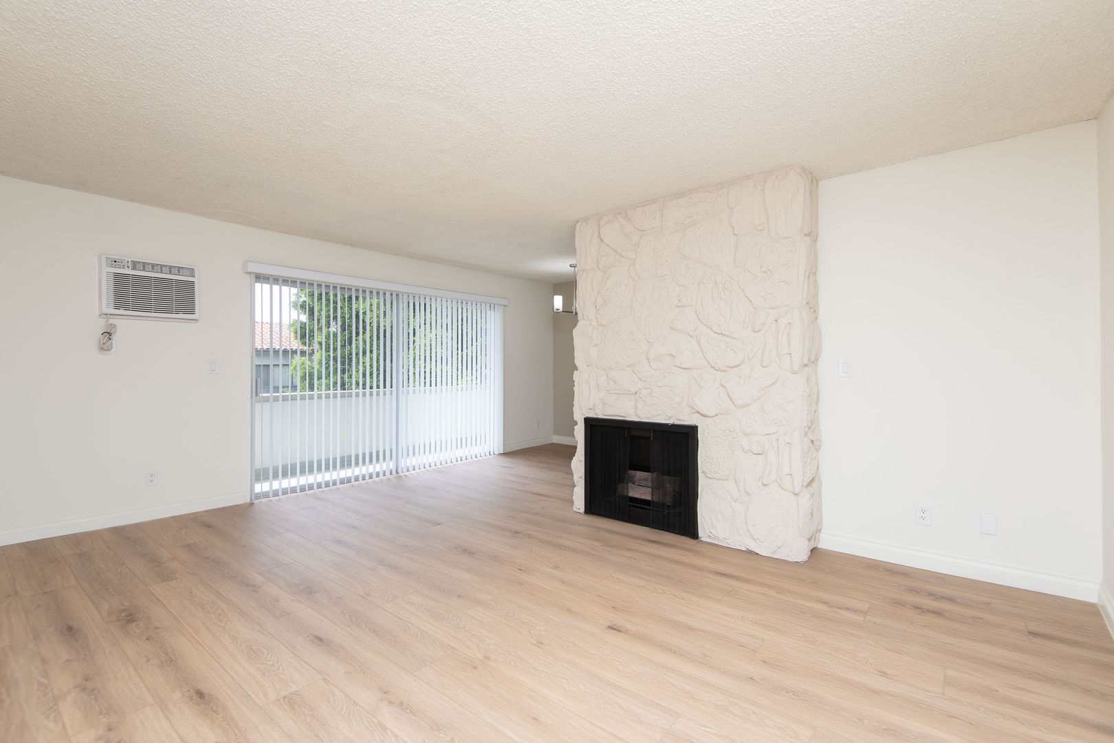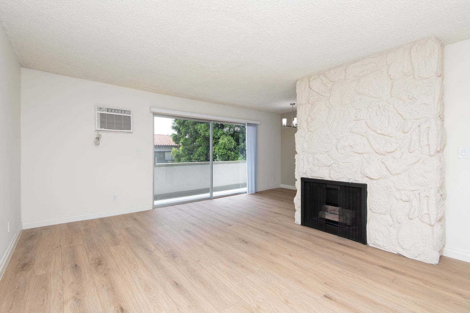 Gorgeous and newly remodeled 2 bedroom 2 has all the amenities you desire and boasts 920 sq. ft. of living space. The open and spacious floorplan has NEW laminate flooring throughout. The living room has a cozy gas fireplace with custom accent walls and a NEW wall heat pump that will keep the temperature perfect. The sliding doors lead onto a 65 sq. ft. private balcony for outdoor furniture and plants. Adjacent to the dining area is the NEWLY updated kitchen that is equipped with NEW quartz countertops, NEW stainless-steel appliances and ample cabinetry. The full hallway bathroom has a modern look with NEW quartz countertop, framed decorative mirror, and a full tub/shower with NEW quartz custom tile and NEW glass shower doors. The primary bedroom is very spacious and bright with a large window for plenty of natural light and a walk-in closet with built-in shelving. The attached bath has a NEW quartz countertop, and a spa inspired shower with NEW glass doors and a decorative mirror. The 2nd bedroom is also spacious, with a large window, mirrored closet doors and can easily fit a queen bedroom set. The hallway also has additional storage with a matching, NEW quartz countertop for a designer look. Stylist apartment home that will rent fast! Schedule a viewing today!